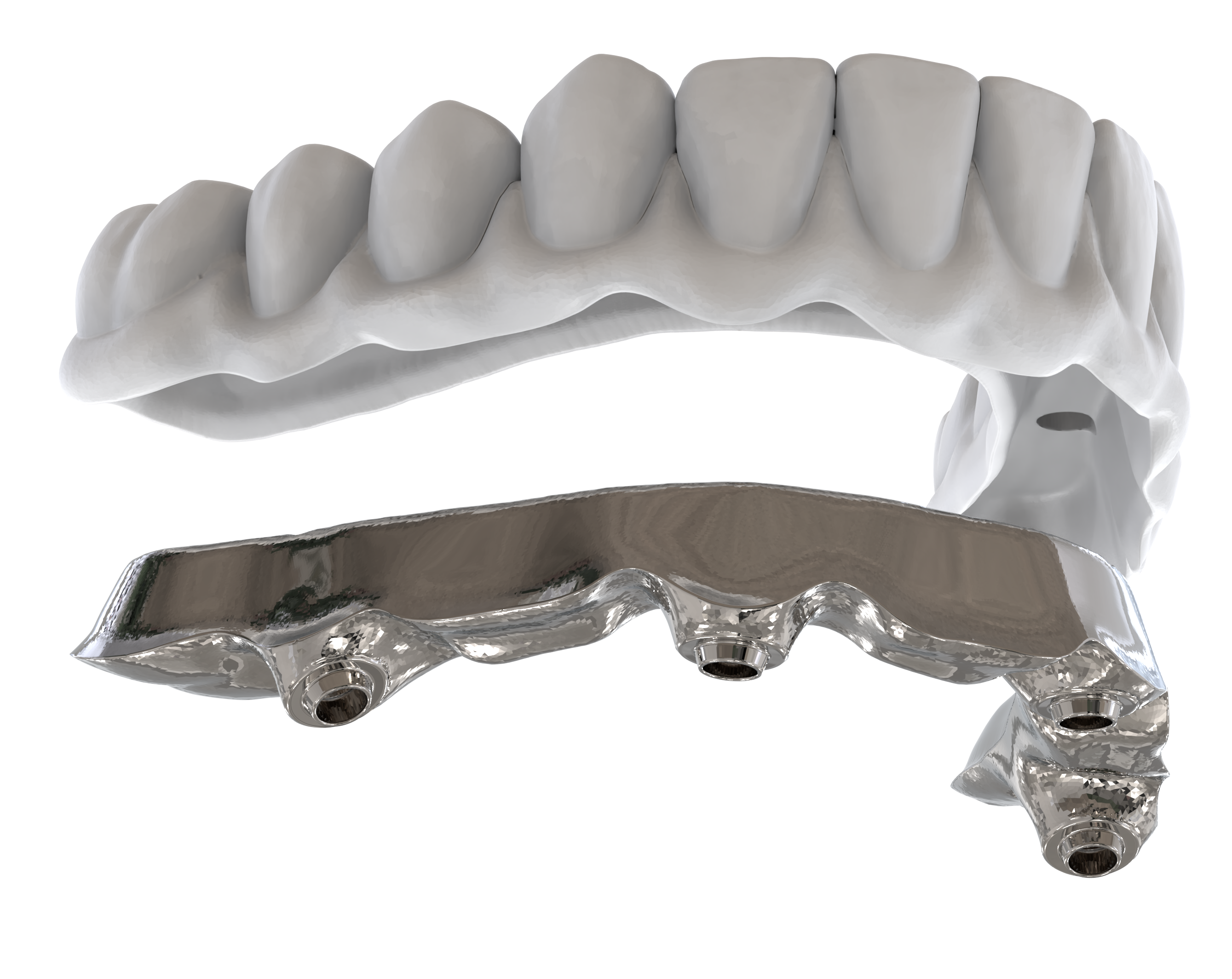 We design the bar and the secondary structure. The bar is then milled in titanium, while the secondary structure can either be manufactured by us in zirconia or PMMA – or produced in-house by you from the STL file we provide.