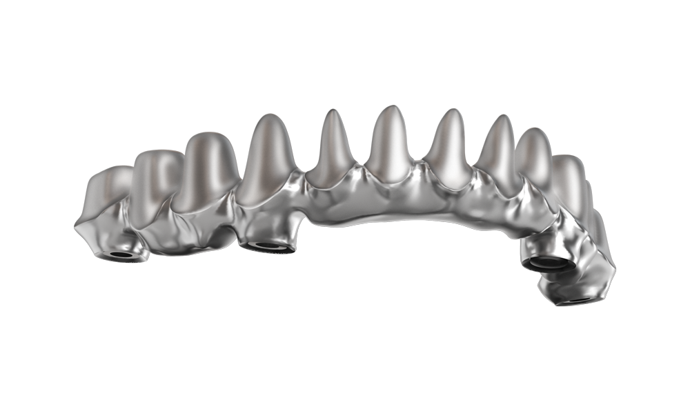 Våra individanpassade implantatbroar erbjuder enastående kvalitet och anpassningsmöjligheter. Vi erbjuder implantatbroar i titanium grad 4, koboltkrom eller additiva koboltkrommaterial, med valet av raka eller vinklade skruvkanaler. Våra implantatbroar är kompatibla med de vanligaste implantatsystemen, och vi erbjuder även hjälp med broar för ovanliga plattformar.